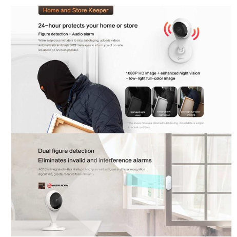 AC1C 360 Smart IP Camera QIHOO CCTV WIFI Night Vision Motion Detect kamera keamanan ?Empower Your Dreams? SPESIFIKASI? ?Resolution : 1080P ?Smart Detection : Face Recognition, Human, Motion Detection ?Two Way Audio : Yes ?Night Vision : Color Night Vision ?Storage Options : Cloud and Local Storage ?Filed of View : 130 ?Pan & Tilt : - ?Power Supply : Plug-in ?Share with Family : Share with Up to 5 Friends or Family ?Wi-Fi Connection : 2.4GHz Only FITUR? ?1080P UHD with 1920x1080 pixels of resolution ? 150 wide-angle view ?7m night vision ? Auto on/off timer mode ? Motion determination ?Crying detection ? Easy WiFi connection ?Two-way voice communication ? Real-time monitoring via smartphone and computer ? Magnetic base allows for firmly attaching to any metal surface ?Adjustable base allows you to adjust 360 degree freely ? Support Micro SD card up to 64Gb for record playback ?Support cloud video record ISI PAKET : ?1 x 360 AC1C 1080P Night Vison Camera ?1 x 2.5m USB Cable ?1 x UK 3Pin Adaptor(WITH SAFETY MARK) ?1 x 3M Sticker ?1 x English /Chinese Manual