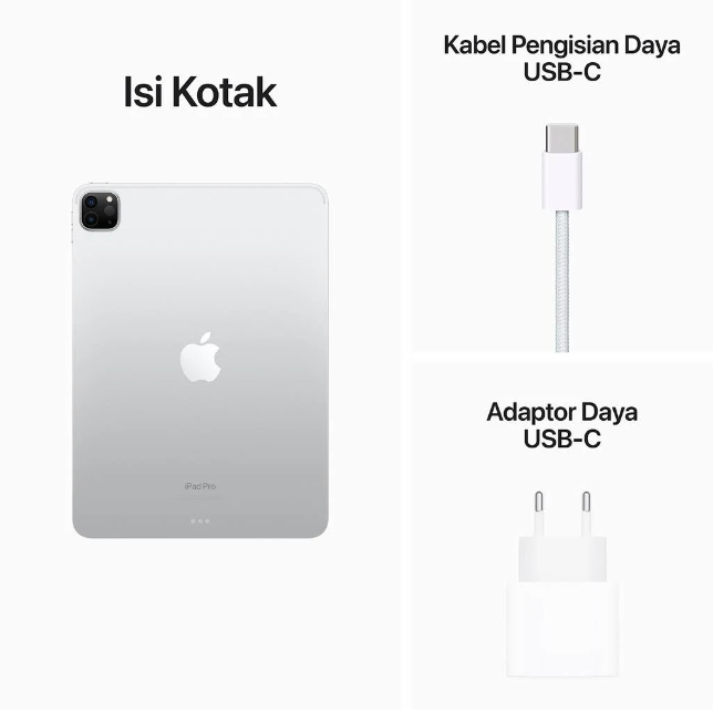 Dengan performa yang menakjubkan, konektivitas nirkabel super cepat, dan pengalaman Apple Pencil generasi berikutnya. Ditambah, fitur produktivitas dan kolaborasi baru yang andal di iPadOS 16. iPad Pro adalah pengalaman iPad terbaik. Poin-poin fitur utama · Layar Liquid Retina 11 inci cemerlang(1) dengan ProMotion, True Tone, dan warna luas P3 · Chip M2 dengan CPU 8-core dan GPU 10-core · Kamera Wide 12 MP, kamera belakang Ultra Wide 10 MP, dan LiDAR Scanner untuk AR yang imersif · Kamera depan Ultra Wide 12 MP dengan Center Stage · Tetap terhubung dengan Wi-Fi 6E(2) ultra cepat · Konektor USB-C dengan dukungan untuk Thunderbolt/USB (4) · Face ID untuk autentikasi aman · Selangkah lebih maju dengan kekuatan baterai sepanjang hari(4) · Berfungsi dengan Apple Pencil (generasi ke-2), Magic Keyboard, dan Smart Keyboard Folio · Mendukung fitur layang Apple Pencil untuk sketsa dan goresan yang lebih presisi · iPadOS 16 menjadikan iPad semakin andal dengan fitur produktivitas dan kolaborasi baru yang luar biasa Legal Aksesori dijual terpisah dan tergantung ketersediaan. Kompatibilitas bervariasi berdasarkan generasi. Aplikasi tersedia di App Store. Ketersediaan judul dapat berubah sewaktu-waktu. Perangkat lunak pihak ketiga dijual terpisah. (1) Layar memiliki sudut melengkung. Jika diukur sebagai persegi, layar iPad Pro 11 inci memiliki ukuran diagonal 11 inci. Area bidang layar berukuran lebih kecil. (2) Wi-Fi 6E tidak tersedia di Tiongkok daratan dan Jepang. (3) Memerlukan paket data. Untuk lebih jelasnya, tanyakan kepada operator Anda. Kecepatan bervariasi menurut kondisi lokasi. (4) Kekuatan baterai bervariasi tergantung penggunaan dan konfigurasi. Lihat apple.com/batteries untuk informasi selengkapnya. Dapatkan poin MyEraspace setiap pembelian di "iBox Official Shop" dengan cara berikut: 1. Daftar menjadi member atau Login di eraspace.com 2. Kunjungi eraspace.com/myeraspace/claim-transaction, lalu pilih Klaim Transaksi 3. Masukkan No Pesanan dari Shopee Note : Alamat email yang digunakan untuk transaksi di "iBox Official Shop" harus sama dengan email yang didaftarkan di MyEraspace Apple