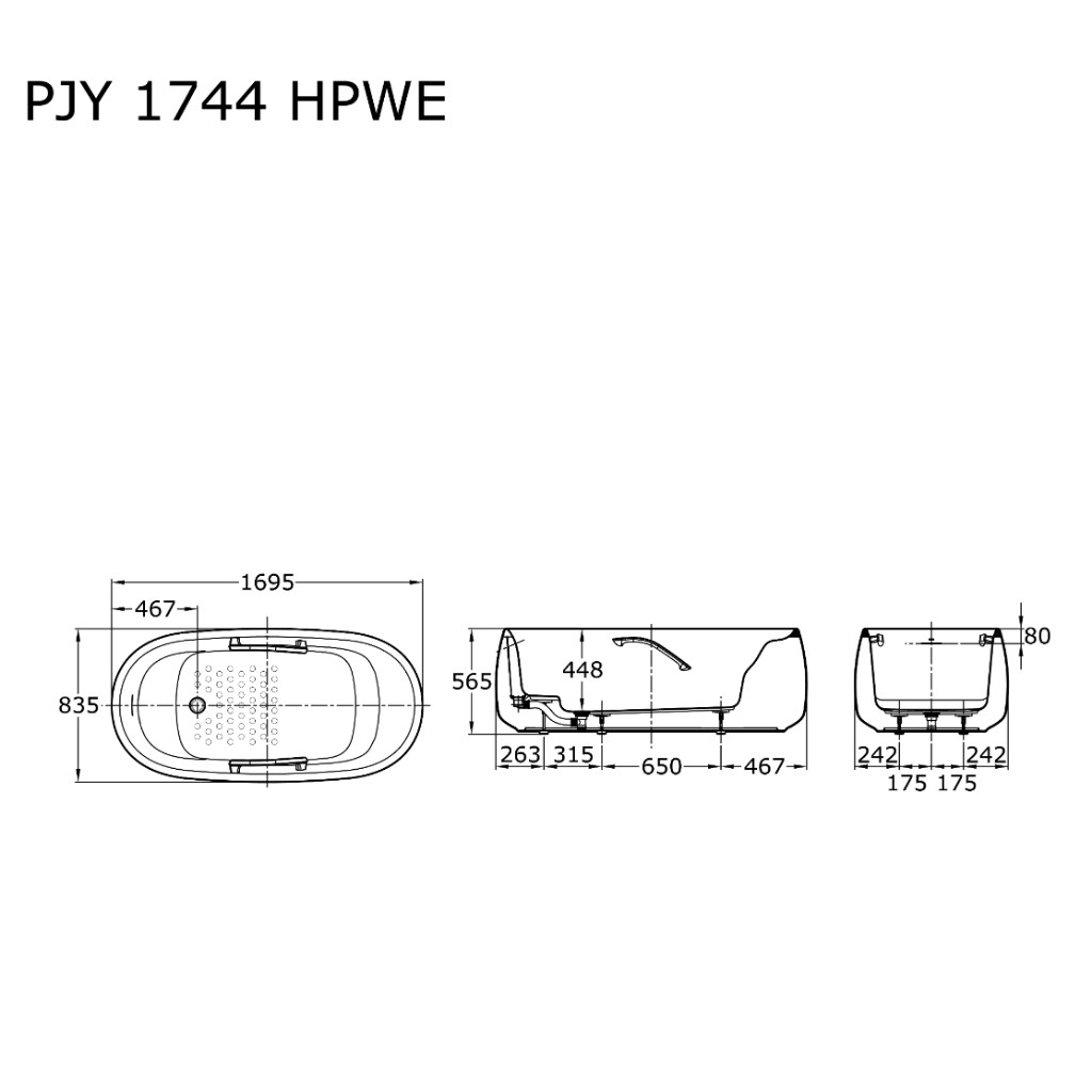 PJY1744HPWE Freestanding Bathtub with Hand Grip Height 565 mm Width 1695 mm Depth 835 mm