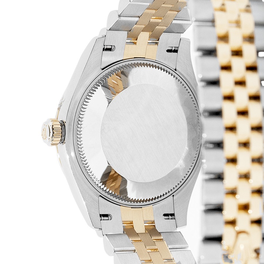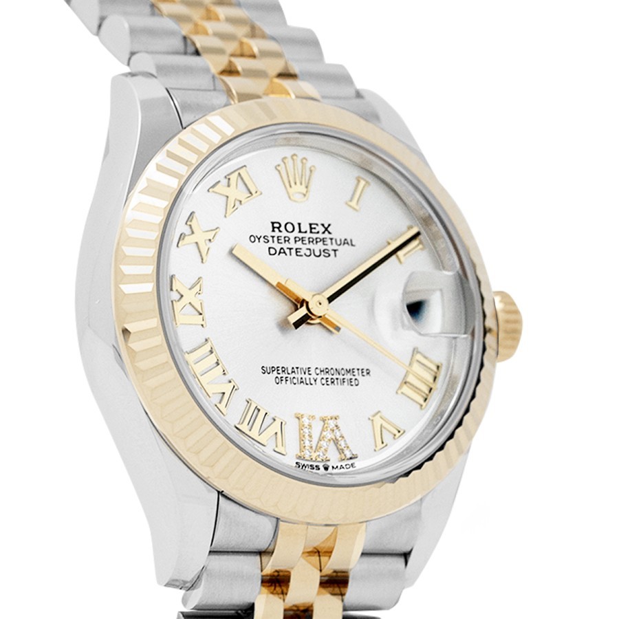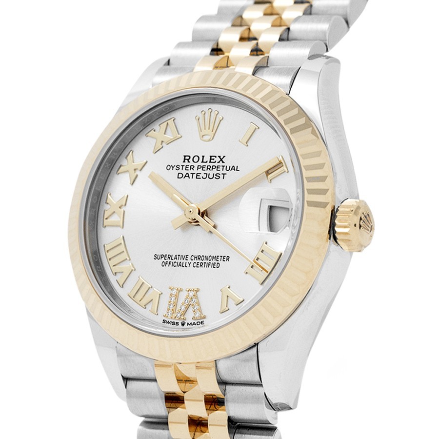 The Rolex Lady-Datejust 31 278273VI Silver Jubilee in Oystersteel and 18k yellow gold features a silver dial with a large VI set with 11 diamonds, and a jubilee bracelet.