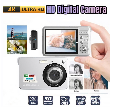 Dengan resolusi video 1080p dan 48 megapiksel untuk kebutuhan utama, kamera digital ini menghasilkan gambar berwarna lebih tajam dan alami. Mikrofon internal merekam suara stereo yang jernih dan menakjubkan. Berkat kemudahan pengoperasiannya, setiap pemula atau anak-anak dapat mengendalikan kamera tanpa batas dan dengan cepat menikmati kesenangan dalam fotografi.