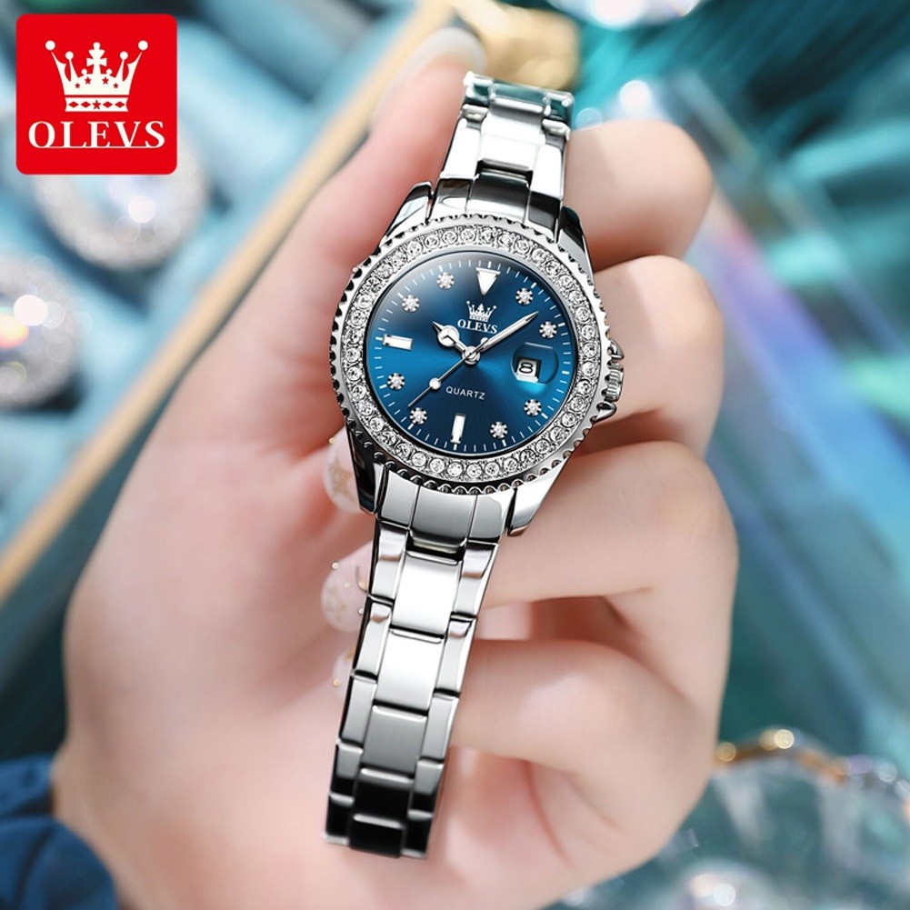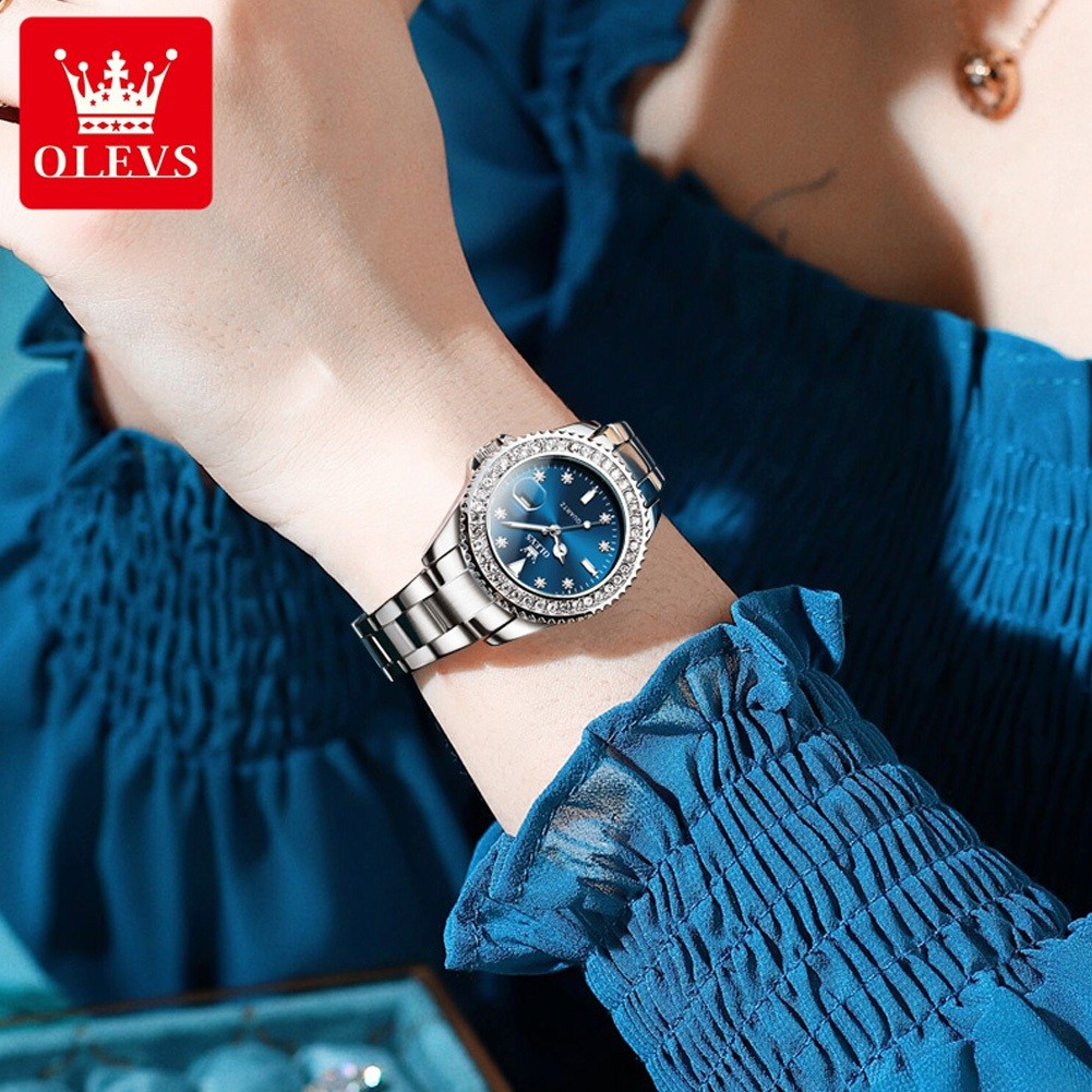 OLEVS Jam Tangan Wanita Anti Air Original Terbaru Cewek Luminous Kalender Stainless Steel Fashion Women Watch Model 9945