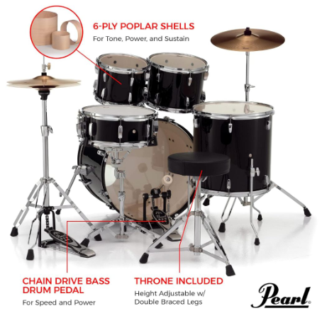 The drummer inside you has ALWAYS been there and waiting to take the first step of a lifelong rhythmic journey. That essential first step on the road to drumming greatness begins with the right tools. No toys or hand-me-downs; a new, complete drum set package with everything you need to start your odyssey to the big time. Pearl's Roadshow Series has everything you need to begin the journey.