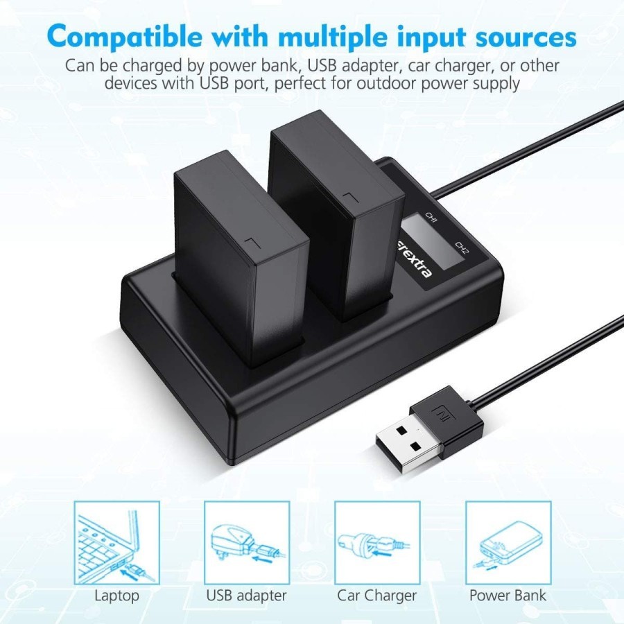 Built-in USB Cable : This lightweight and compact battery charger features a built-in USB charging input thats designed to be fully integrated with this charger itself to save space and prevent damage. The charger can be charged by power bank, wall charger and other USB devices.