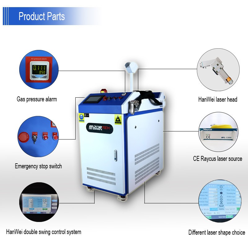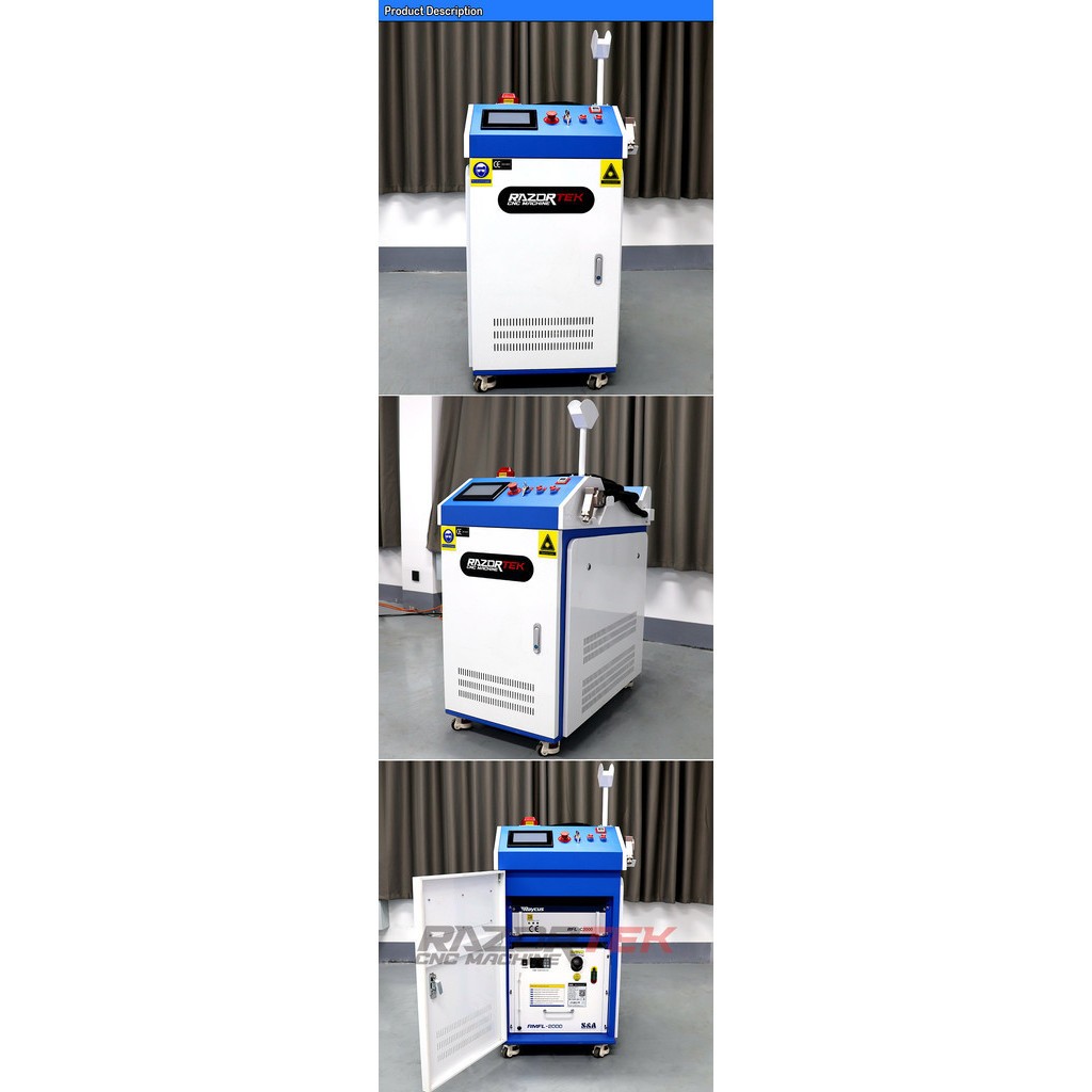 Razortek pembersih laser penghilang karat, mesin pembersih Laser serat pembersih karat 1500w untuk baja, logam, AL