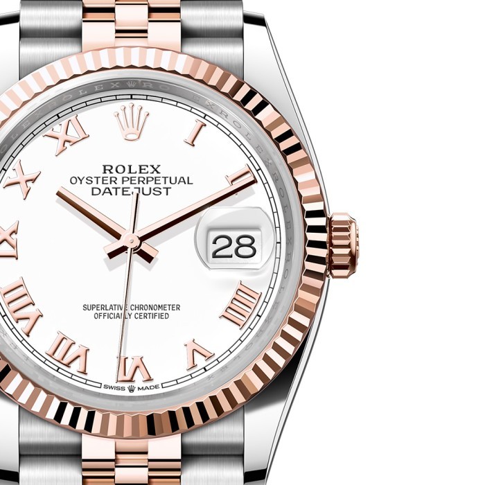 : 1x Rolex Datejust 36 - 126231 White Roman Jubilee Steel-RG Dial White Bracelets Jubilee, five-piece links