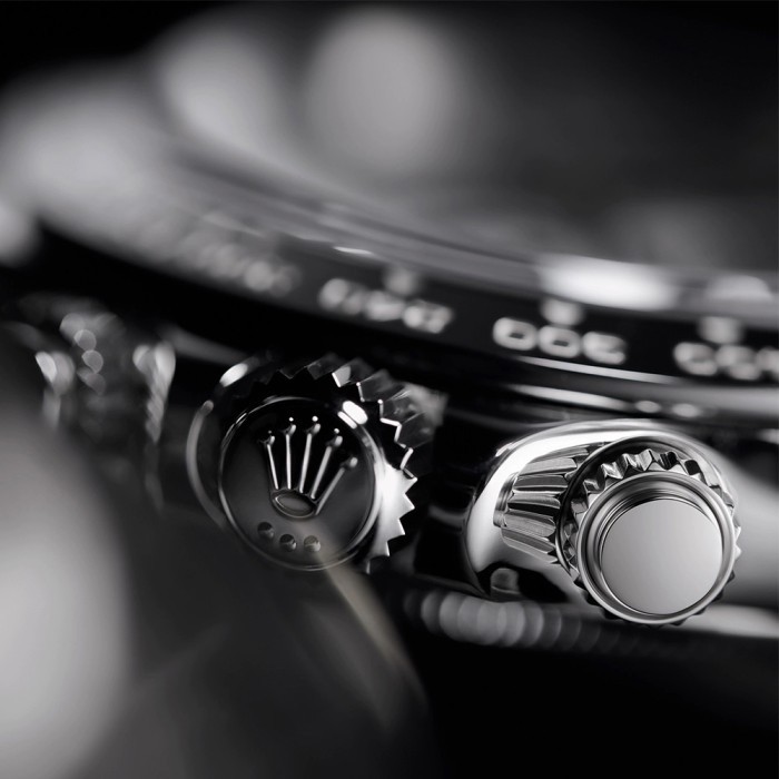 : Black monobloc Cerachrom bezel in ceramic with moulded tachymetric scale
