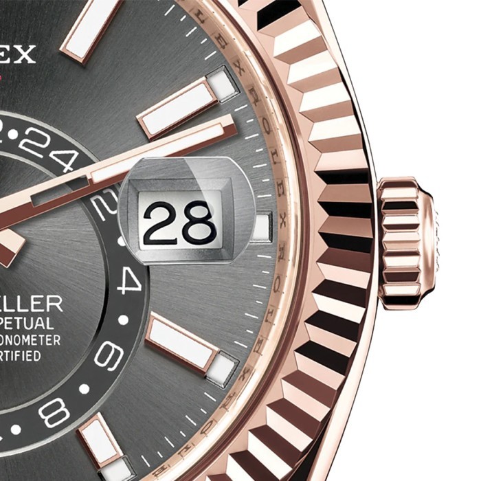1x Rolex Skydweller - 326235 Grey Rose Gold Oysterflex Dial Slate Bracelets Oysterflex