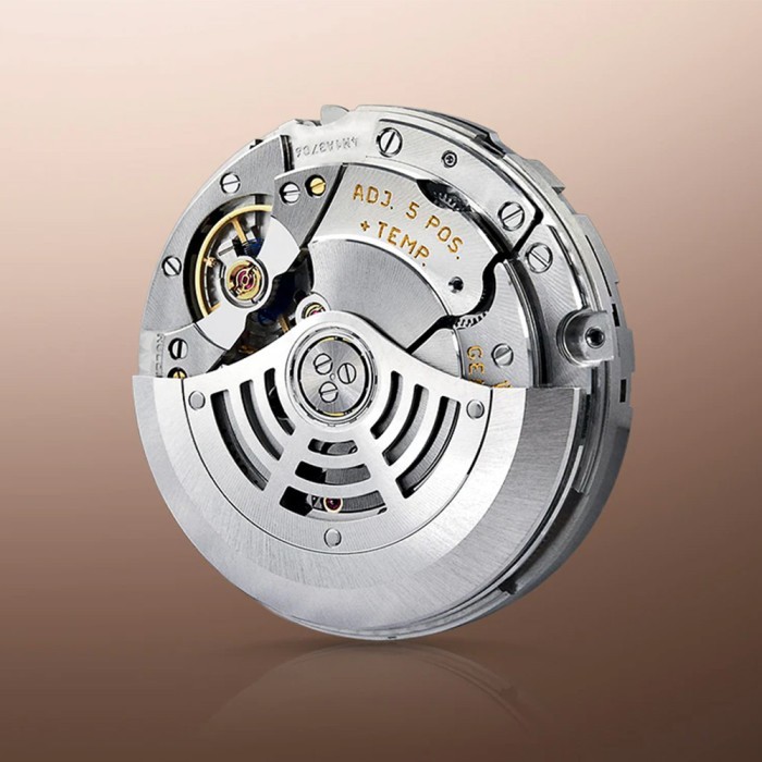 Month display via 12 apertures around the circumference of the dial. Stop-seconds for precise time setting