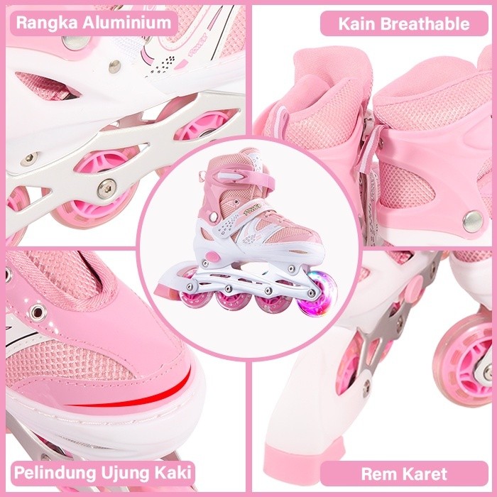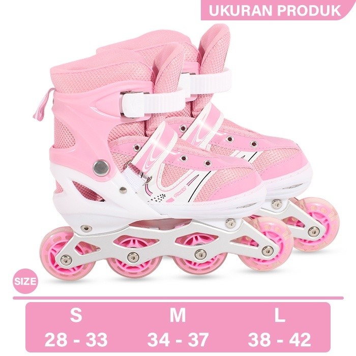 Size S: Cocok digunakan untuk ukuran sepatu : 30-34 Size M: Cocok digunakan untuk ukuran sepatu : 35-38 Size L : Cocok digunakan untuk ukuran sepatu : 39-42 (Ukuran bisa diatur/adjustable sesuai dengan ukuran Real di atas) Spesifikasi : - Kondisi Baru (NEW) - Bisa di set model INLINE SKATE dan model BAJAJ - Ban: Atom/Karet PVC, bagian depan bisa menyala jika berputar - Frame Aluminium - Rem pada Sepatu sebelah kanan - Tas Plastik dan kunci L - Baut Bajai ========================================== Spesifikasi: - Berlabel SNI - Barang Sesuai Gambar ========================================== Keuntungan Berbelanja Di Toko Kami : 1. Fast Response. 2. Jaminan Produk Berkualitas. 3. Test Quality Control Sebelum Dikirim (Kelengkapan, Kondisi Fisik, Dan Fungsi Fitur). 4. Pengiriman Cepat Dan Setiap Hari Ada Pengiriman (Kecuali Minggu / Ekspedisi Libur), Pengiriman Paling Lama 2 x 24 Jam Dari Invoice Masuk Ke Sistem Toko Kami ========================================== *Catatan Untuk Pembeli : 1.Toko Buka Senin s/d Minggu Pukul 09:30 Wib s/d 17:00 WIB 3. Semua Barang Ready Stok , Jika Habis Akan Kami Infokan 4. Pengiriman 2- 4 Hari (Tergantung Ekspedisi Yang Dipilih ) 5. Wajib video unboxing saat paket sudah diterima dan dalam kondisi paket belum dibuka untuk klaim keluhan - pemeriksaan barang 6. Tidak ada video = tidak menerima komplain / retur / refund 7. Video jangan terputus