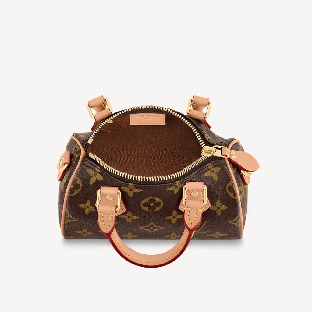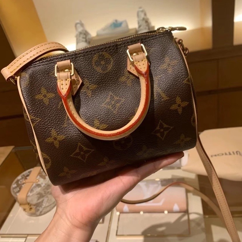 * All products in the store are in stock. The product is 100% authentic. We will strictly control the quality of the product so that you can bid your purchase with confidence. *Purchase Notice: Our products are in stock. you can order * Remember to pay attention to this shop~ We always give small gifts + discounts + free shipping events!!! 【Product maintenance】 Do not rub repeatedly to avoid damage to the surface. when not in use Please store it in a dust bag/box. Keep dry. Avoid direct exposure to high temperatures or direct sunlight. Avoid prolonged contact with materials that are easily detached from pigments. so that the pigment can be transferred to the product. when cleaning is necessary Wipe it with a soft dry cloth. Do not use soap or solvents. We will inspect products for all buyers before shipping. Please rest assured to buy! Revamped in Monogram canvas, the Nano Speedy is the perfect miniature version of the Speedy bag from Louis Vuitton's signature Speedy bag, and the perfect way to carry your essentials. This beautifully crafted design is complemented by aged natural cowhide and gold-tone hardware. In addition to carrying both ears It also has an adjustable and detachable shoulder strap for versatile carrying. M81085 Detailed Features ✅16 x 10 x 7.5 cm. ✅(Depth x Height x Width) ✅ Monogram coated canvas ✅ Natural tanned cow leather edge ✅ Golden hardware ✅ Close the zipper ✅ Shoulder strap: removable, adjustable ✅ Shoulder strap length: 45.5 cm ✅Maximum shoulder strap:59.0 cm ✅ Handle: Double